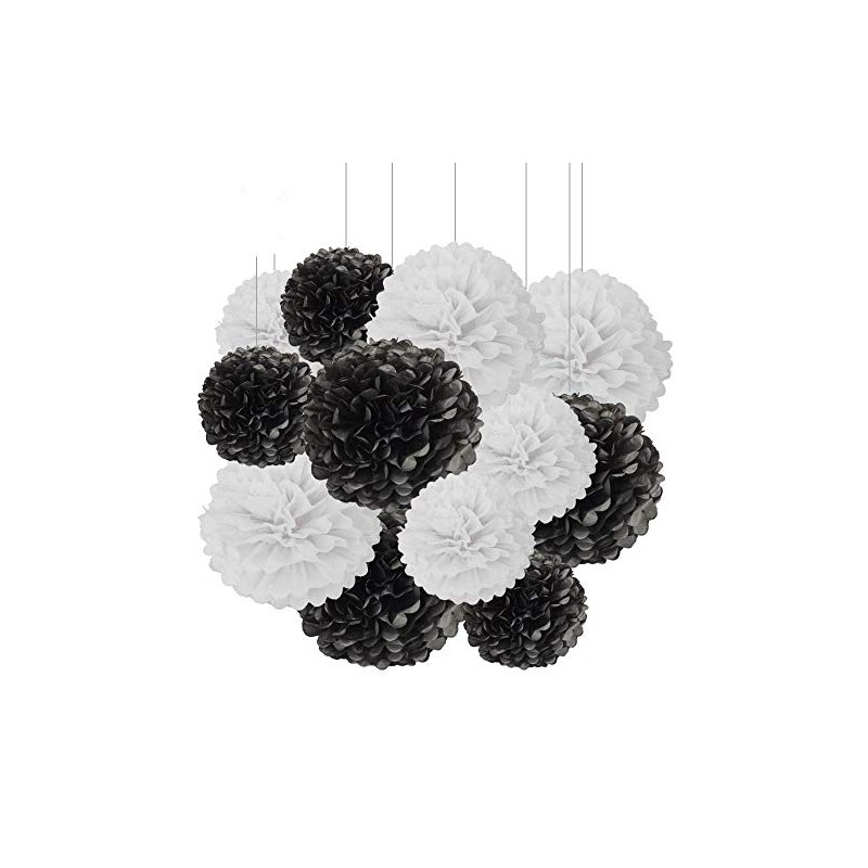 - Papier-Pompons Dekorationen: Paket beinhaltet: 3 Stück 25,4 cm schwarz + 3 Stück 25,4 cm weiß + 3 Stück 30,5 cm schwarz + 3 Stück 30,5 cm weiße Papier-Pompons.
