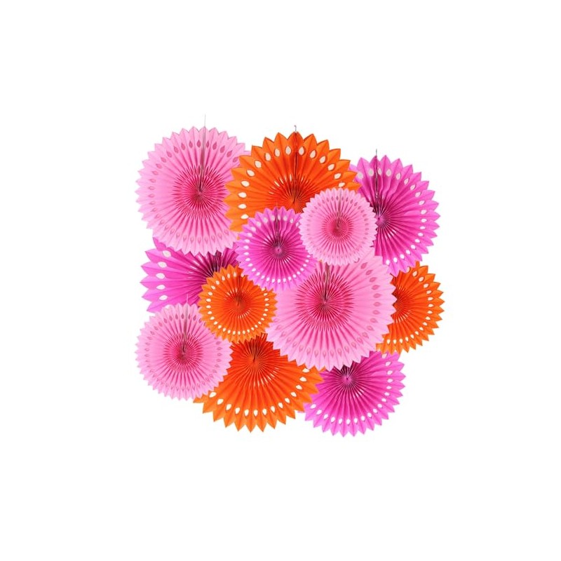 - [Multi-Size Set]Includes 12 pieces of hanging paper fans in 6in/15cm, 8in/20cm, 10in/25cm, and 12in/30cm sizes for versatile party backdrop decor arrangements.
