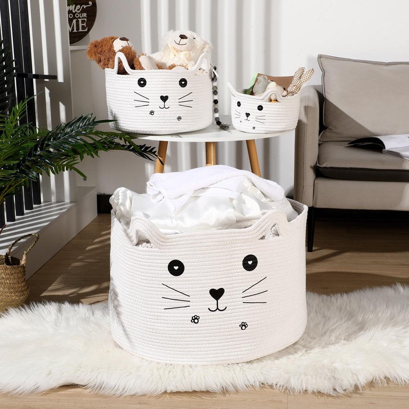 - Lovely Design: this laundry storage basket made by soft cotton woven thread rope is designed with 2 cat ear shaped handles, and paired with a cute cat face, which is easy to attract people's attention and the delicate design can add more charm to your home decoration