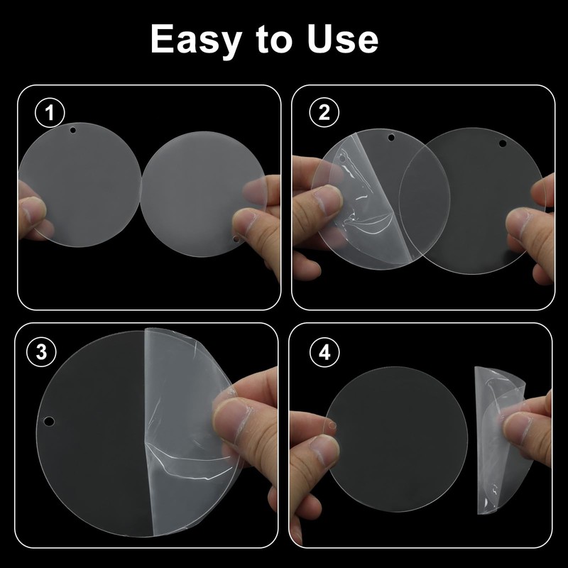 - Protective Film for Pristine Quality: Both sides of the acrylic discs are coated with a transparent protective film, safeguarding them against scratches and dirt until you're ready to use them.