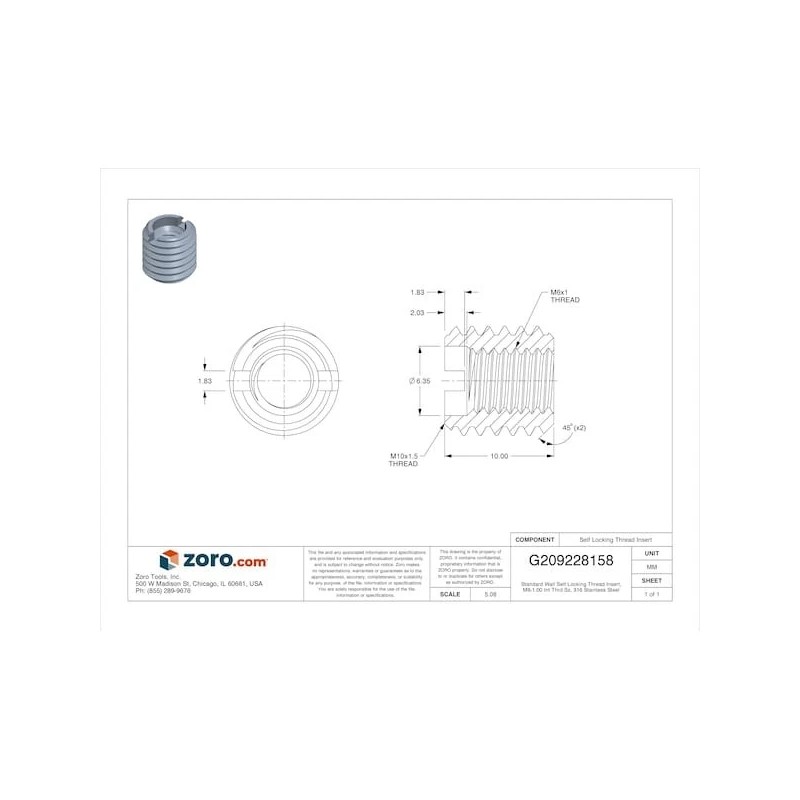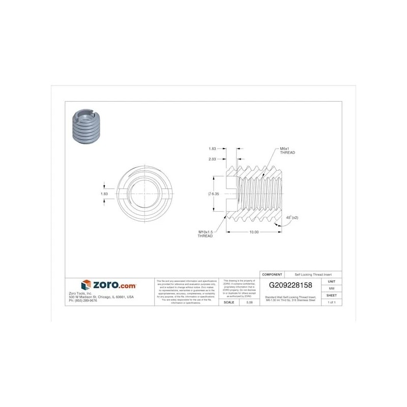 Zoro Select 416-6 Standard Wall Self Locking Thread Insert, M6-1.00 Int Thrd