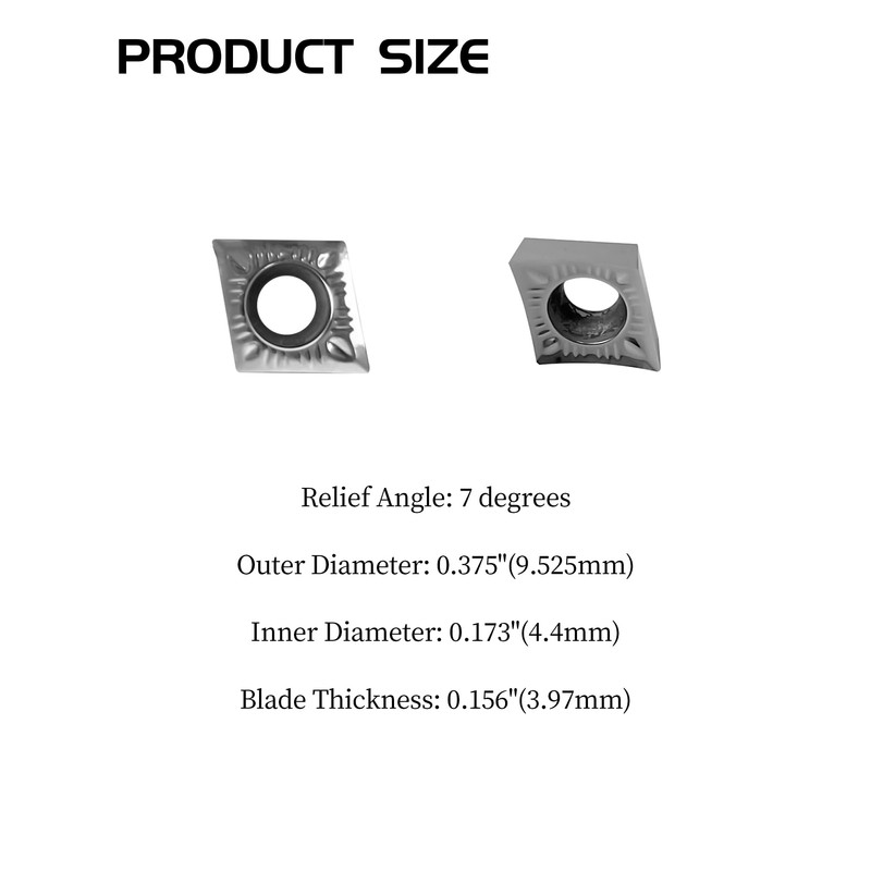 - 【Turning Inserts Size】Blade Thickness: 3.97mm/0.156", Outer diameter: 9.525mm/0.375", Inner diameter: 4.4mm/0.173", R=0.2mm(0.008")