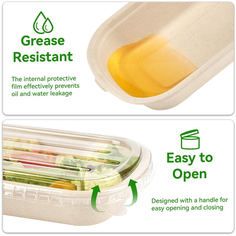 - Oil and Water Proof: Each to go food container has a protective film on its interior, preventing oil, water, or soup from seeping out, which also can keep food fresh with clear lids