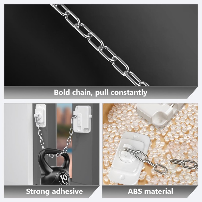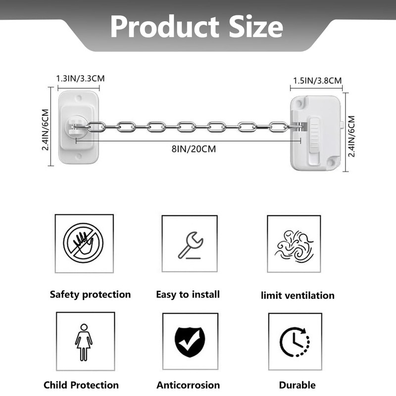 - Verstellbare Kettenlänge: Die Eisenkette ist flexibel einstellbar und bietet eine maximale Länge von 20 cm, ideal für verschiedene Fenster- und Türtypen