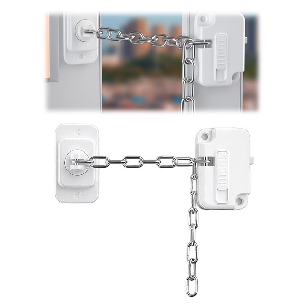ZORVYN 1 Stück Adjustable Child Safety Window Lock, Window Locks, Door Chain Without Drilling, Window Safety for Children, Compatible with UPVC, Windows, Doors, Car Windows, Cabinets, Drawers