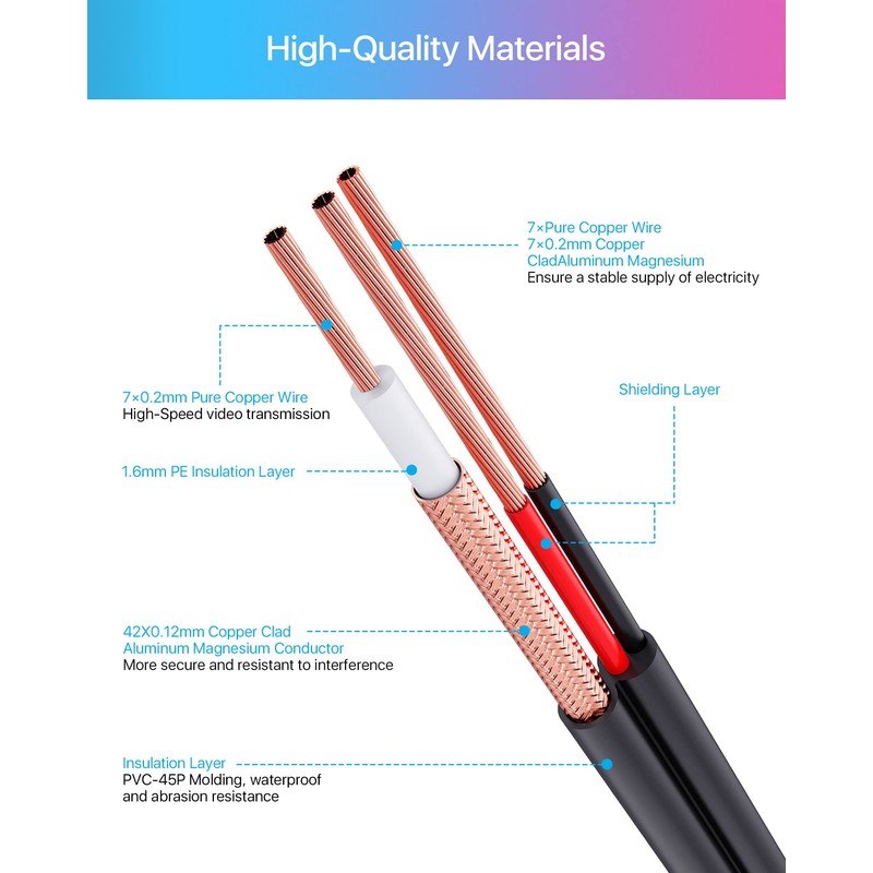 - 【Premium material & durable quality】The black cable is made of pure copper material,featuring lower resistivity and better electrical conductivity.