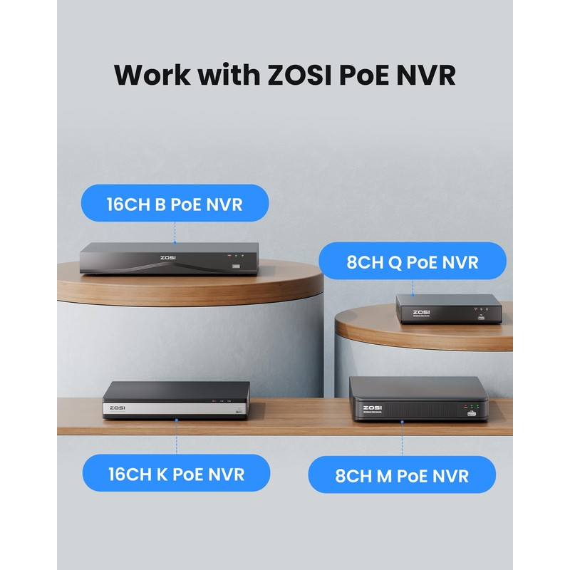 ZOSI C220 4K UHD 8MP Add-On PoE IP Camera Outdoor Indoor, Surveillance Security Camera for Home, AI Person/Face/Vehicle Detection, One-Way Audio, 100ft IR Night Vision, Only Work with ZOSI PoE NVR
