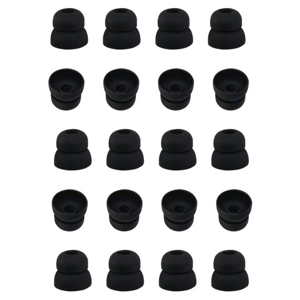 Zotech 20 Pcs Large Silicone Replacement Ear Buds Tips (Black) (Double Flange)
