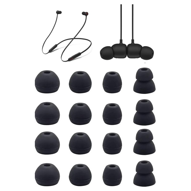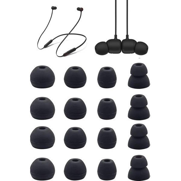 Zotech Replacement Earbud Tips for Beats Flex All-Day Wireless Earbuds, 8 Pairs (16pcs), Black, Small, Medium, Large, Double Flange
