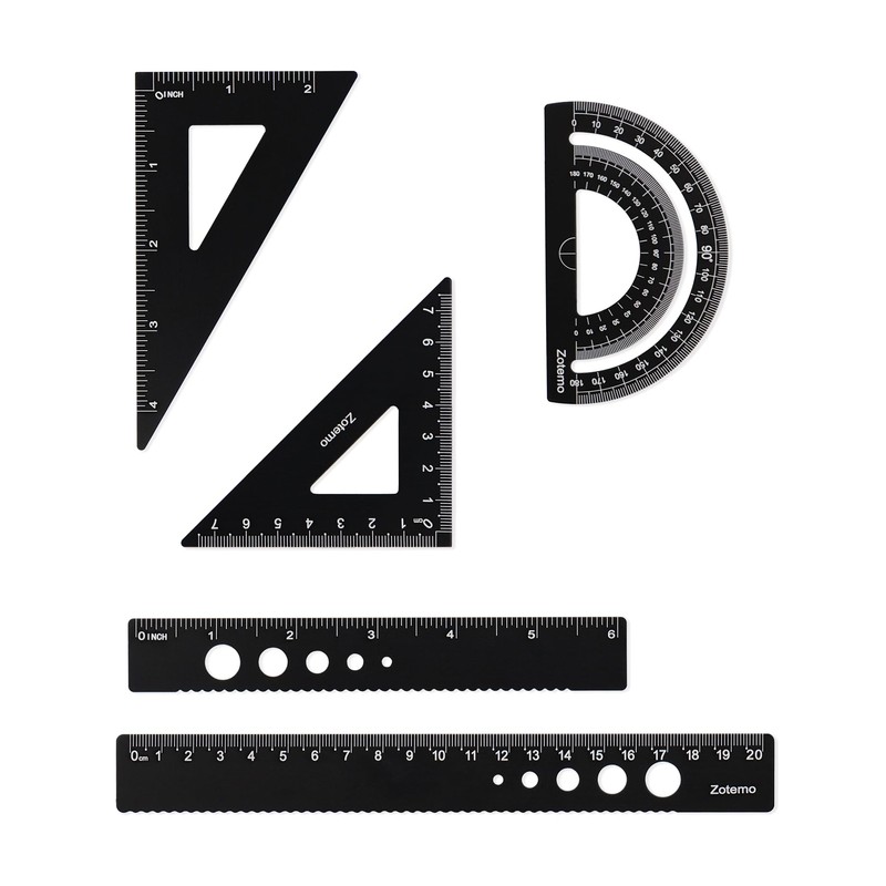 - Package Includes: 1 pcs 20 cm/ 8 inch straight ruler; 1 pcs 15 cm/ 6 inch straight ruler; 1 pcs 60°/ 30° triangle ruler; 1 pcs 45° triangle ruler; 1 pcs semicircle protractor