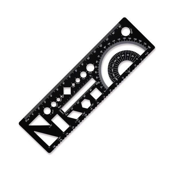 Zotemo Multi-Purpose Drafting Template, Metal Geometry Ruler Set, Circle Drawing Template with Laser etcted Scale (Black)