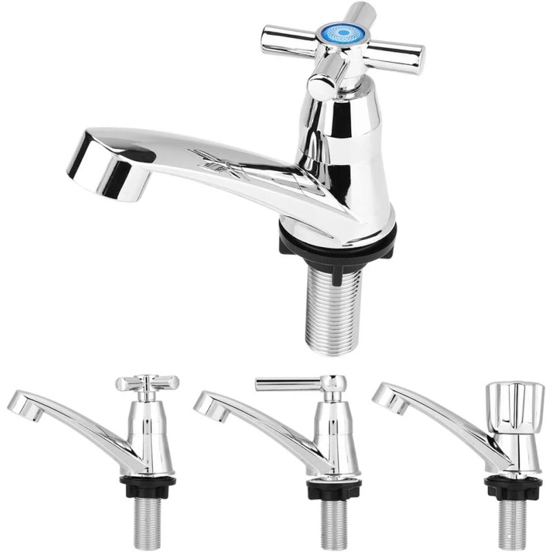 Description: This single cold type water faucet is perfect for the use in washing basin, hand basin, water sink and so on. It is easy to install and use. A good choice for many households Specifications:Condition: 100% Brand New Material: ABS Surface Treatment: Chrome Structure: Single Type Handle Type: Cross Handle, Straight Handle , Shutter Handle (optional) Max. Turning Angle: 1/4 Turn Inlet Thread Size: G1/2(20mm) Weight: Approx. 89g Package Included:1 * Basin Single Cold Faucet Note:Please note that the sealing adapter on the water tap thread part is delivered in black or white ramdom color, so please take the product which you received as standard. Thanks for your understanding.