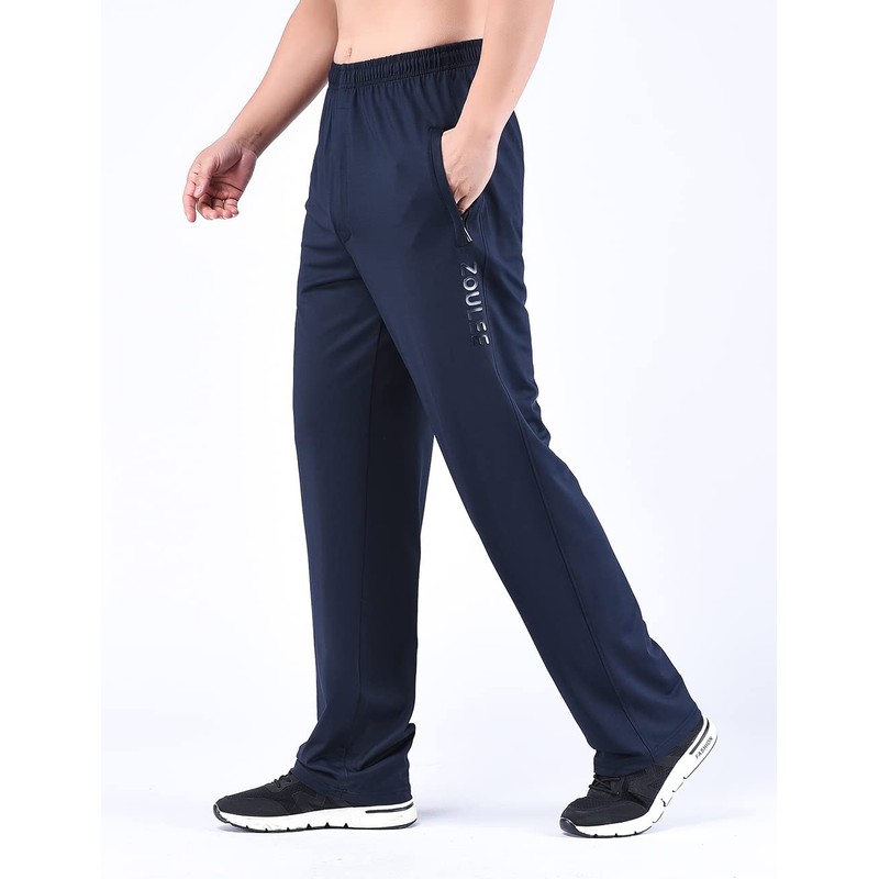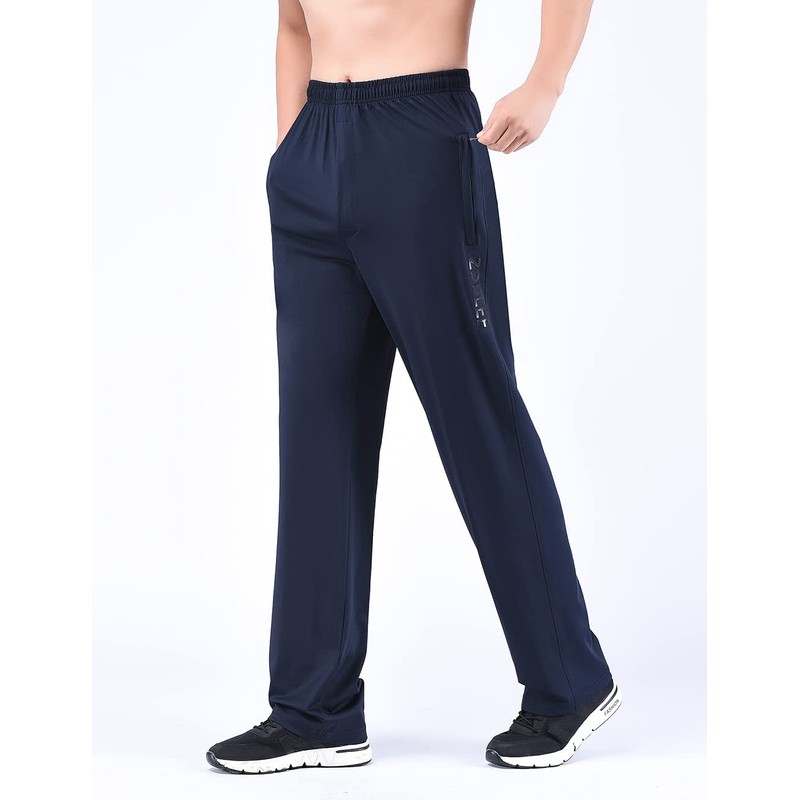 Zoulee New Men's Front Zipper Fly Open-Bottom Sweatpants Jogger Pants Navy Blue L