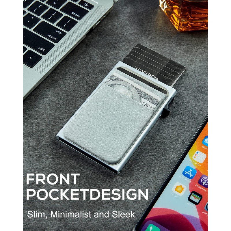 ZOVYRON Slim Pop Up Wallet Card Holder with Money Pocket,Minimalist Wallet for Men RFID Blocking Smart Wallet Metal Card Case
