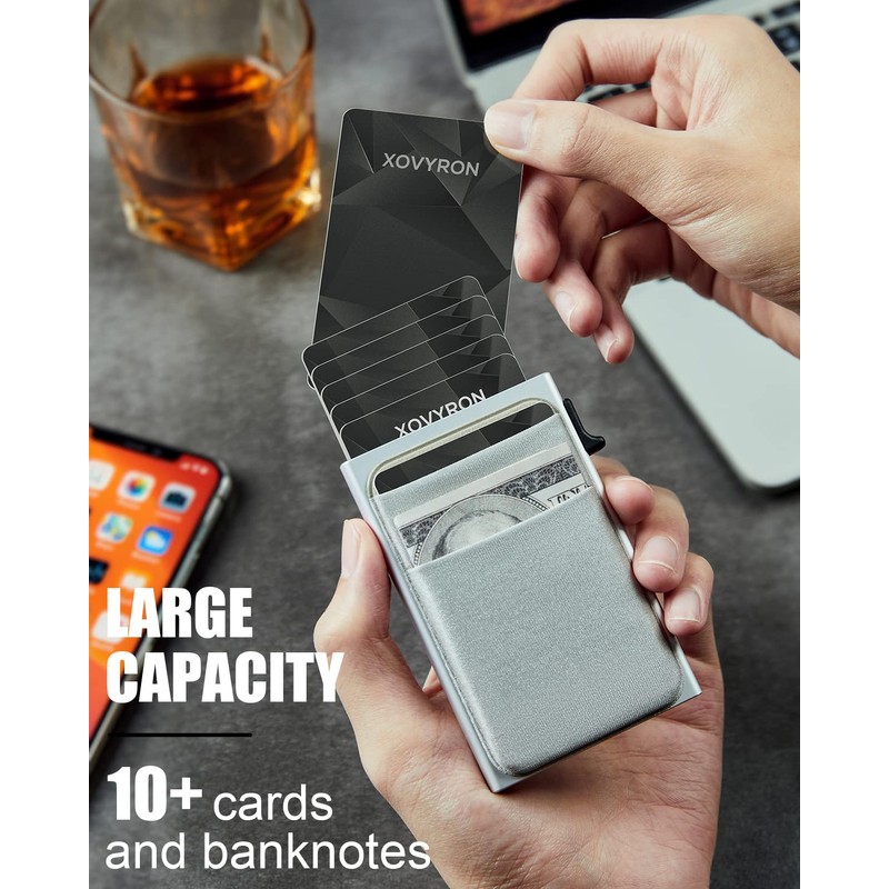 - RFID Blocking Technology for Security: The Metal card holder wallet has the RFID blocker built in for extra security. The aluminum case can protects your card information from unwanted wireless device scanning, ensuring the safety of your private property