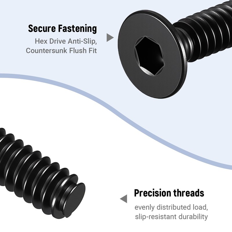 - [High-Torque, Easy Drive]: Featuring a deep and precisely formed 3/32" hex socket (Allen key size), these screws allow for high-torque application with minimal risk of cam-out or stripping. This secure grip makes them easy to drive, even in tight spaces, protecting both the fastener head and your tools during assembly and disassembly.