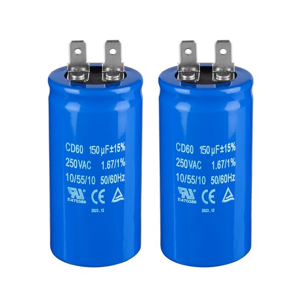 ZOWZEA 150uF/MFD CD60 Motor Start Capacitor 250VAC 50/60Hz for Electric Motor Starting 2 Pack