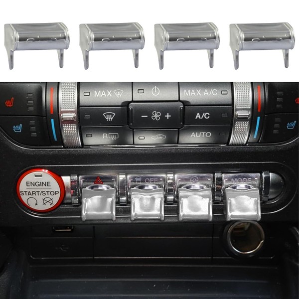 ZOXOQ Center Console Control Button Cover Compatible with Ford Mustang Accessories 2015-2023 Dashboard Switch Button Cap Switch Button Protective Cover Interior Dash Decor Trim (Silver)