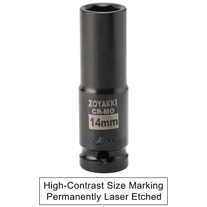 ZOYAKKI 1/2" Drive x 14 mm Deep 6 PT Impact Socket, CR-MO, 1/2-inch Drive 6 Point Axle Nut Socket for Easy Removal of Axle Shaft Nuts (14MM)