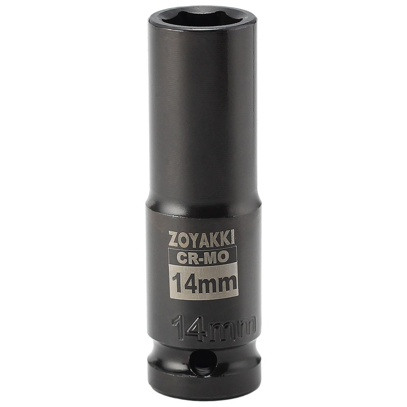 ZOYAKKI 1/2" Drive x 14 mm Deep 6 PT Impact Socket, CR-MO, 1/2-inch Drive 6 Point Axle Nut Socket for Easy Removal of Axle Shaft Nuts (14MM)