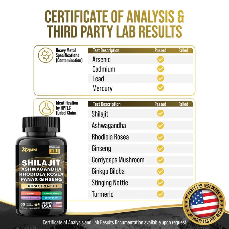 Zoyava Shilajit Supplement - All-in-One Multivitamin Energy Booster - with Ashwagandha & 7+ Extra Strength Ingredients - 60 Capsules - MADE IN USA