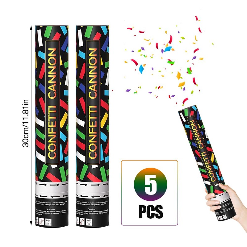 ZOYDP 5 PCS Confetti Cannons, Confetti Cannons Biodegradable 30cm, Multi Colour Confetti, Confetti Cannons Large, confetti poppers for Christmas, Weddings, Birthdays, Party, Celebrations, Anniversary