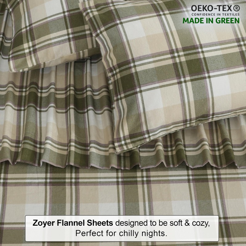 ZOYER Flannel Twin Sheets Set - Soft & Comfy Deep Pocket Cotton Flannel Bedding, Fitted Up to 16", Double Brushed Twin Size Bed Sheet Sets, 3 Pieces, Oliver