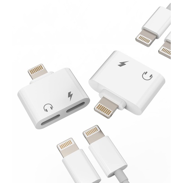 - 【Multi Function】The 4 in 1 Headphone adapter allows you to enjoy perfect music while charging.Support listening to music and the wire control function such as a microphone, volume control, pause and play functions. Fast charging (up to 2.4A power input) and long lasting.(NOTE: The lightning splitter does not support double headphones / double charger plugged simultaneously)