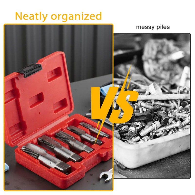 • 【Durable Storage Case Included】The NPT plumbing tap set comes with a sturdy plastic case, not only protects them from rust but also keeps them well-organized and easily accessible whenever you need a thread cutting tool
