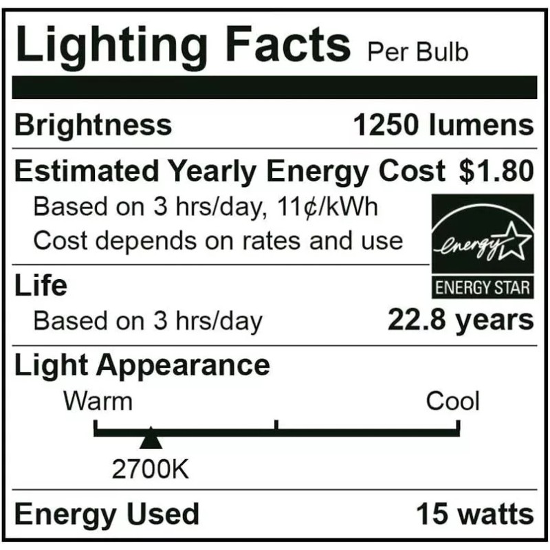 LED EP38-15W6020e delivers superior brightness, valuable energy savings, and long-lasting performance. This PAR38 LED Long Neck bulb is ideal for ambient lighting or general-purpose applications due to its uniform *warm white light (2700K) and replaces conventional 120 Watt incandescent light bulbs. Look for EP38-15W6000e for Soft White (3000K), EP38-15W6040e for Bright White (4000K) and EP38-15W6050e for Cool White (5000K). Enjoy features such as: Instant-on, dimming options, and mercury-free.