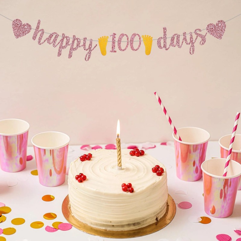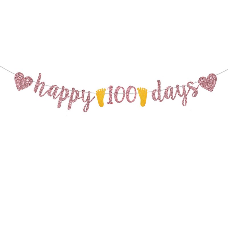 - 【What You Will Get】: One pack rose gold glittery " Happy 100 Days " banner, which can bring more fun to your party!