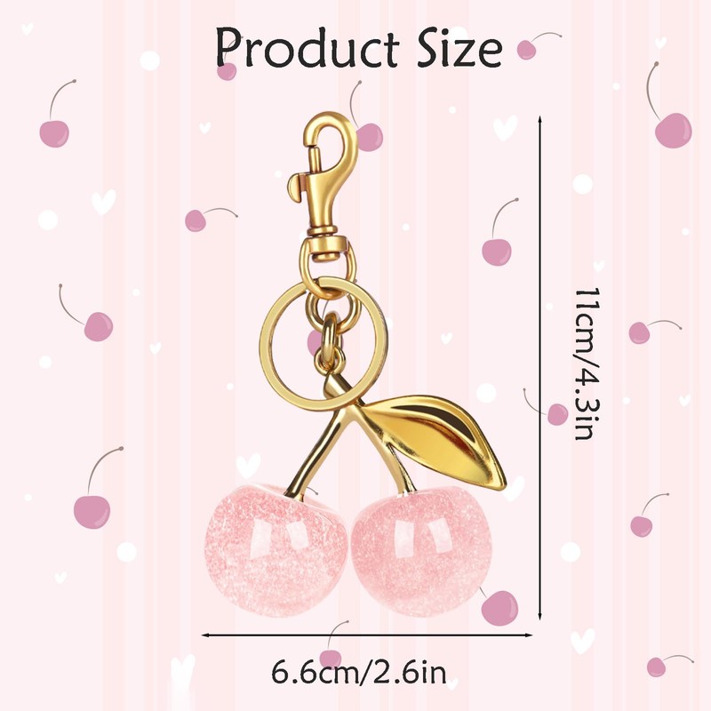 - Premium Material Craftsmanship: Made with durable materials, this cherry bag charm features a shiny finish that enhances its visual appeal; The sturdy construction ensures long-lasting use without losing its luster; Designed to complement various personal items with its versatile look