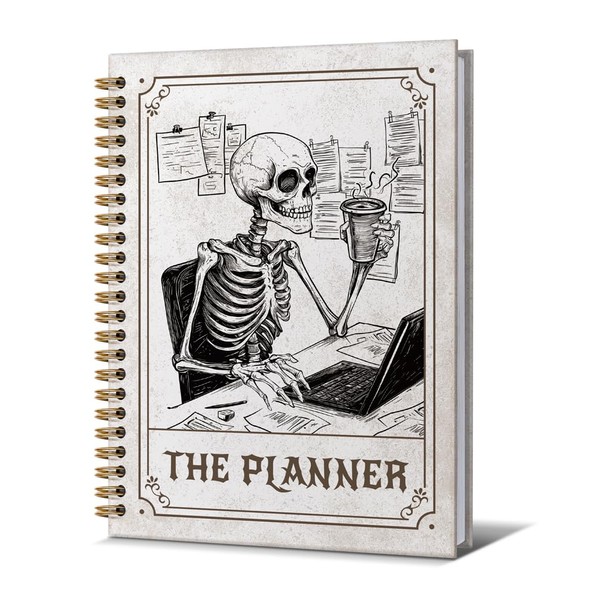 Zpvuklkl Planner Notebook for Men-CuteTarot Card Notebook Depression Quotes For Women Friends Gifts On Birthday Christmas Mother's Day,Gothic Goth Skull Gold Spiral Bound Hardcover,5.8"x8.3"