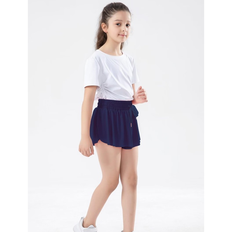 zqajuxg Girls Flowy Shorts with Spandex Liner,2 in 1 Butterfly Shorts Teen Girls with Pockets for Sports,Running,Athletic/Dark Blue/4-6 Years