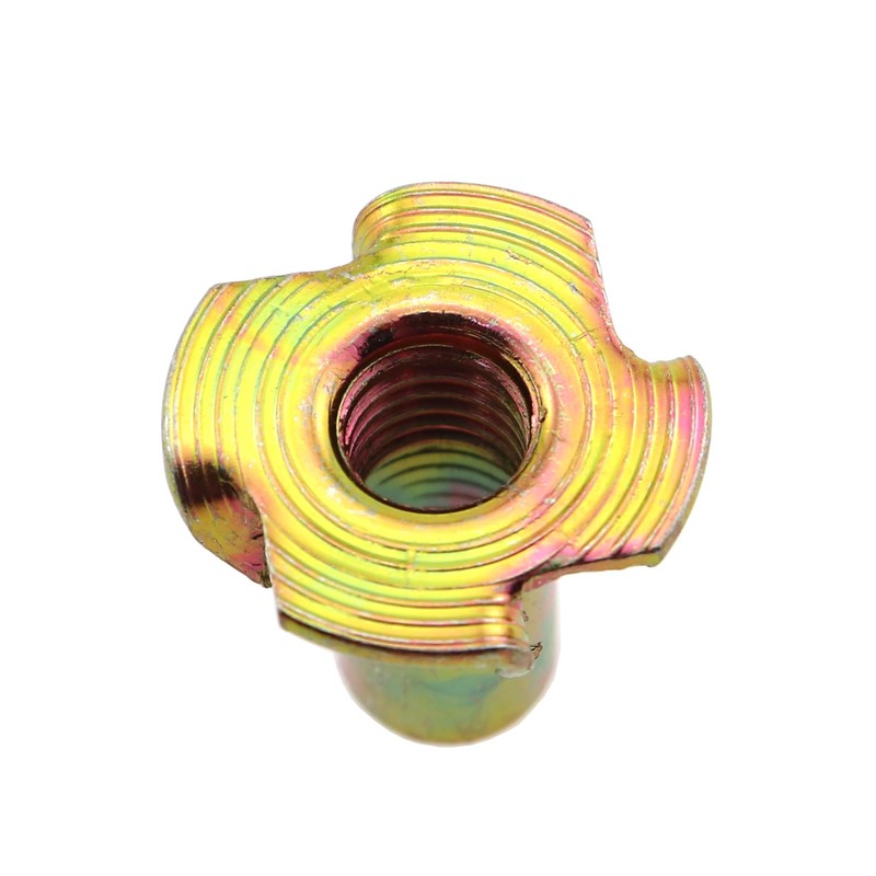 ZQIY 15PCS T Nut 4 Jaw Nut M8x20mm Threaded Insert Tee Nut Fixed Table Chair Legs Quad Spike Furniture Backboard Connection Rivet Nut for Wood Climbing Fixture Cabinetry Furniture