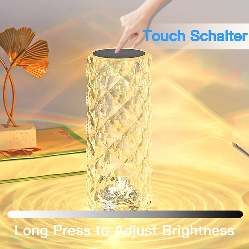 Kabellose Lampe - Diese über USB wiederaufladbare Kristall-Lampe verfügt über einen eingebauten 2000-mAh-Akku mit hoher Kapazität. It is dauert ca. 2-4 Stunden, bis sie vollständig aufgeladen ist und kann bis zu 12 Stunden im Dauerbetrieb betrieben werden. Magic Crystal Lamp - Die Diamant-Tischlampe sieht aus wie ein Kunstwerk und wenn das Licht eingeschaltet ist, fasziniert die verträumte Rosenprojektion. Touch Dimmable Lamp - Sie können das Licht ein-/ausschalten (kühles Weiß, warmes Weiß, natürliches Licht) mit der Berührung eines Schalters auf der Oberseite der LED-Stimmungslampe oder drücken und halten Sie den Schalter, um die Helligkeit einzustellen.