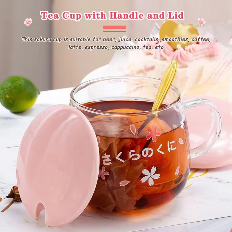 - ✅ 【High Borosilicate Glass Mug】: Your water glasses are made of high borosilicate glass, easy to clean, lead-free, and crafted through multiple processes including high-temperature firing, ensuring durability and safety, microwave safe; ceramic cup lid for good heat preservation; stainless steel cherry blossom-shaped spoon, highly resistant to falls.