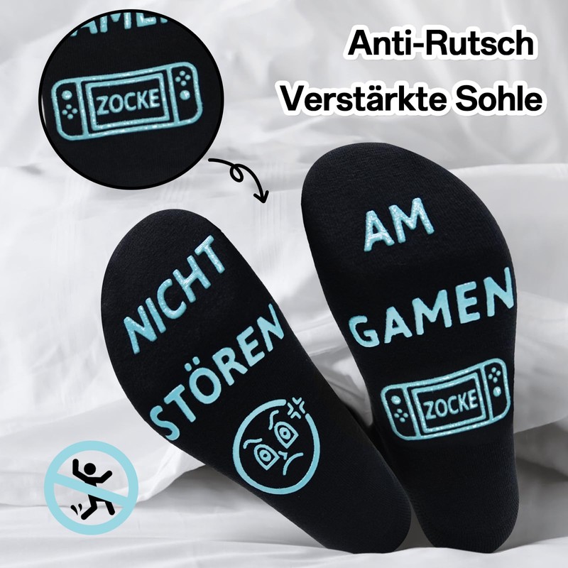 - Humorous sayings: These funny socks are printed on the bottom with the non-slip inscription "Do not disturb am gaming". Fun and original, these socks are suitable for all ages.
