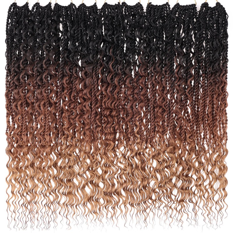 ZRQ 9 Packs Senegalese Twist Crochet Hair 24 Inch Boho Island Twist Crochet Hair Pre Looped Synthetic Braiding Hair with Curly Ends for Black Women 1B3027#