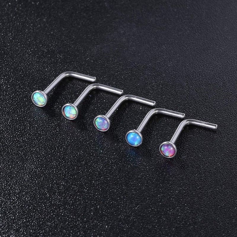 ZS 5 Pieces Blue Opal Nose Studs 20 Gauge Nose Pin L-Shape Nose Piercing Stud Stainless Steel Nose Stud Retainer