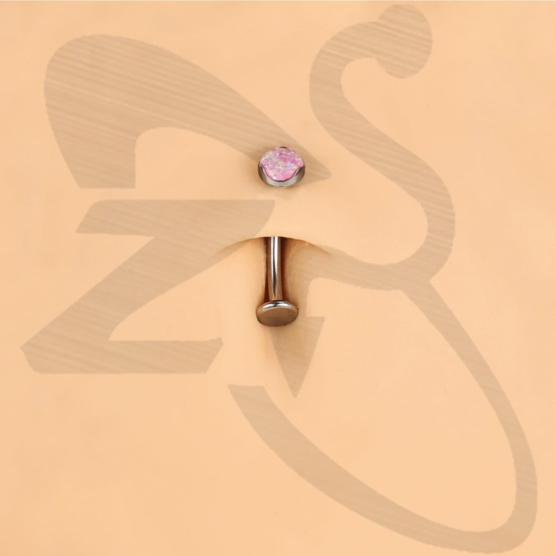 - ❀Long Bar Belly Button Ring Size——Steel navel rings barbell gauge: 14G(1.6mm). Lip rings length: 6/8/10/12/14mm. Stones color: pink, violet, white. Vertical labret ring design: opal stones top. Three colors and six length of floating navel piercing are available, depends on your favorite piercing styles.