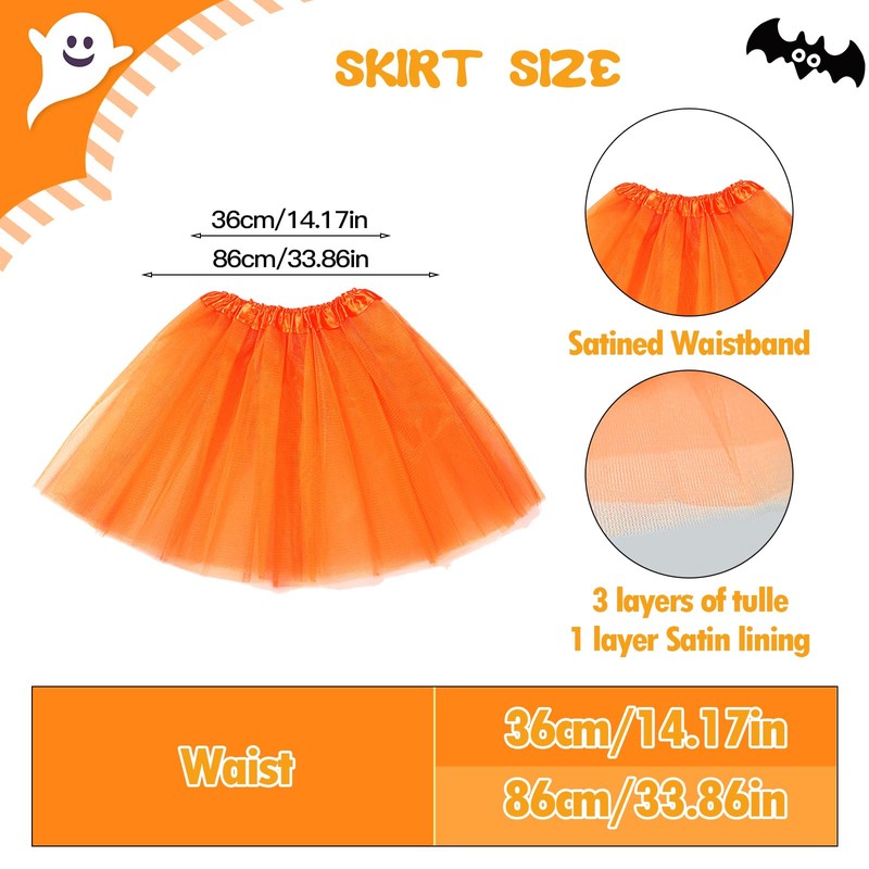 zsccxq 5 Pcs Orange Accessories Costume Set T Shirt Tutu Skirt Headband Mustache Eyebrows Set for Girls Cosplay Party Favor (100cm)