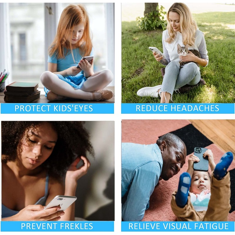Filter harmful blue light and prevent it from impairing vision and ability to concentrate , reduce eye fatigue and protect eyes. (especially for children) .When the phone is turned on, the screen protector will display the original picture quality of the phone.