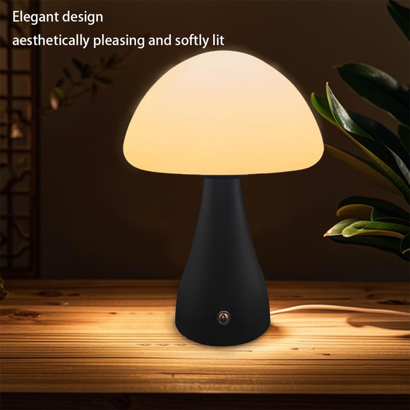 ZSLAIFU Mushroom Lamp, Dimmable Mushroom Table Light, Portable Wireless Small Lamp, Rechargeable Battery Night Light, Stepless Dimming, Birthday Gift Night Lights (Black)