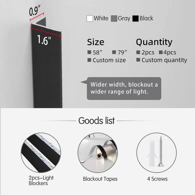 - 【Reduce light leakage】ZSTARR L-shaped PVC Blackout Light Blockers are installed along sides of the window shades and blinds. Stop the light from coming in through the sides of your blackout blinds & shades. Create a dark environment for you and helps protect your privacy and quality sleep.