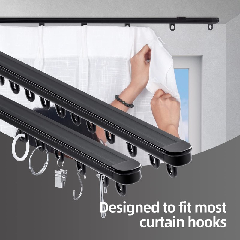 ZSTARR Retractable Ceiling Curtain Track, Measurement-Free Curtain Track 33.5''-59'',For Room Divider, Shower Curtain, Parallel bay window, RV Curtain Track (Black)
