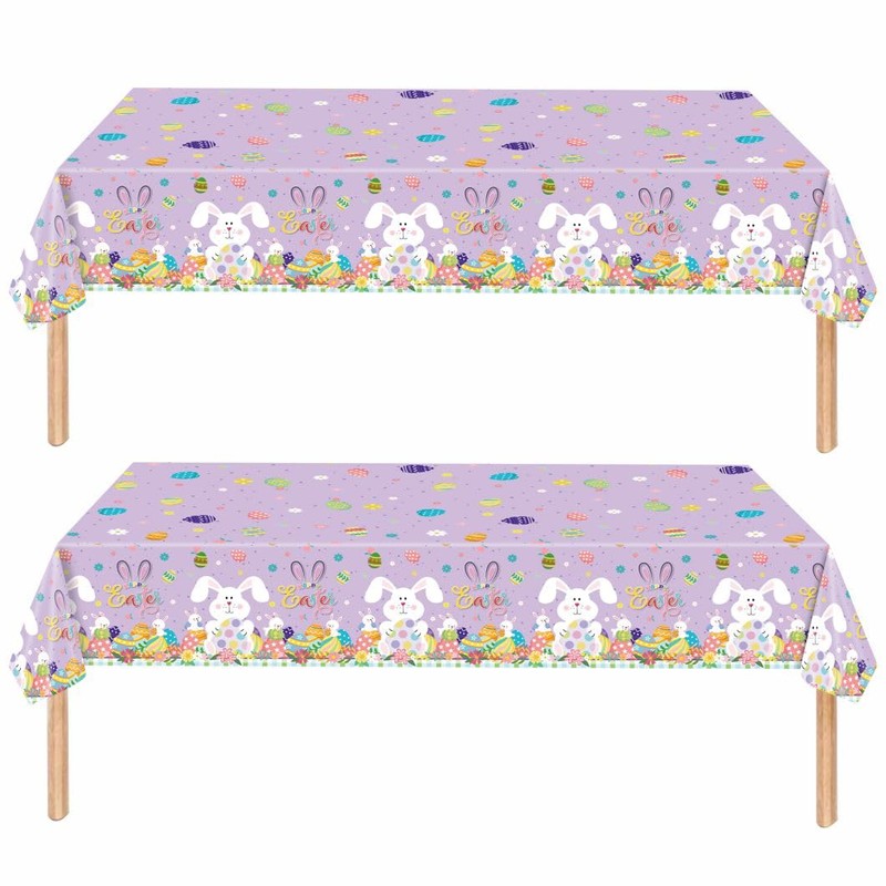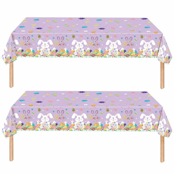 ZSYIULIA 2Pack Easter BunnyTablecloth,Easter Table Decorations Easter Egg Hunt Tablecloth Rectangle 54 * 108in Waterproof Plastic Table Cloth for Eas-ter Party Supplies Easter Table Cover