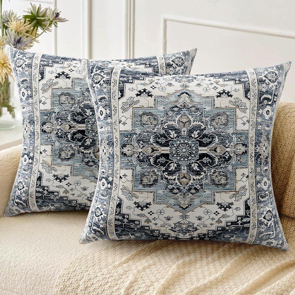 ZSYTZL Boho Throw Pillow Covers 16x16 inch Set of 2,Linen Bohemia Carpet Pattern Decorative Living Room Sofa Bed Square Pillow Case Cushion Cover-Navy Blue