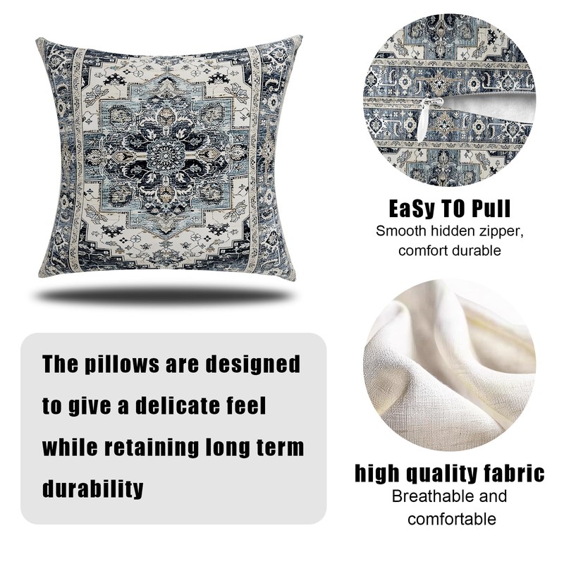 - Bohemian design:The throw pillow covers has a Bohemian Carpet Pattern Design Pattern;The double-sided pattern design matches most home decor;Hidden zipper design Make the pillow covers look more elegant and overall