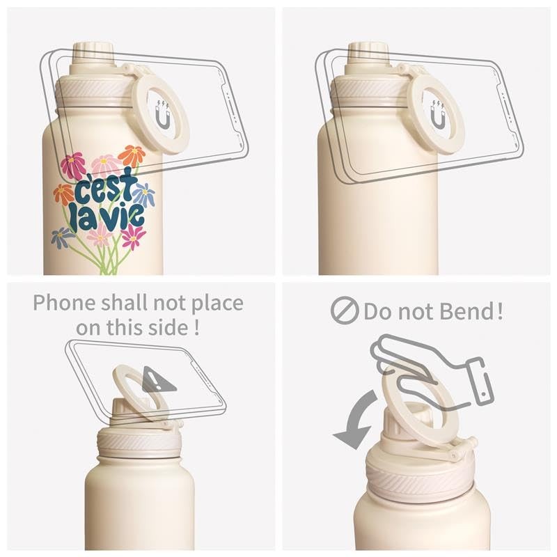 • Tripod-Like Design: Easily attach your bottle to the magnetic phone holder, perfect for those who need to capture content, follow workout videos, or take hands-free calls on the go.
